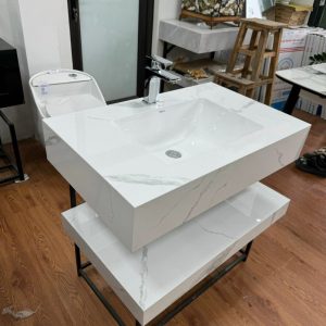 *Lavabo Viglacera bàn đá 2 tầng được làm từ chất liệu đá nung kết. Vậy đá nung kết là gì?